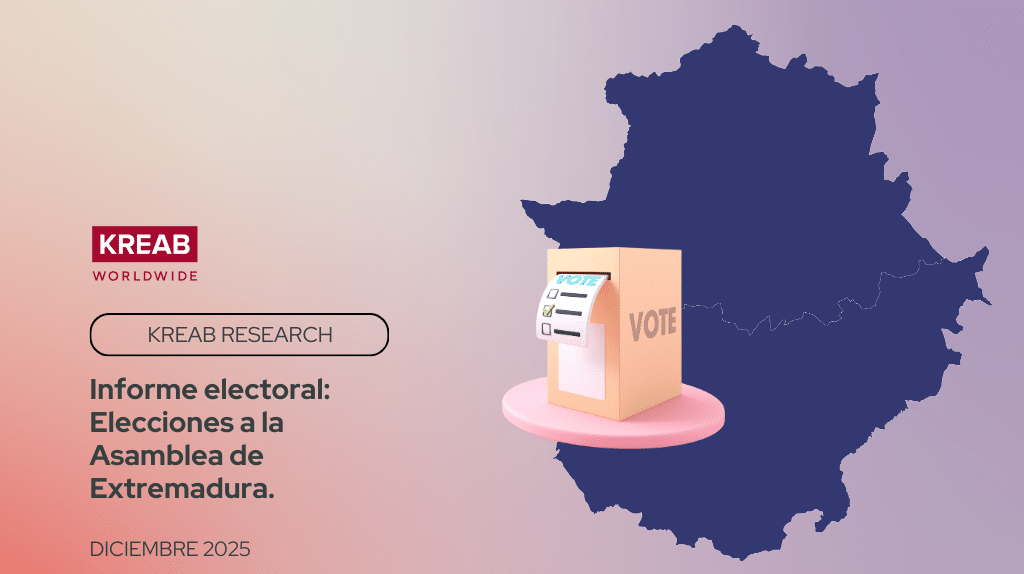 La Unidad de Research de Kreab presenta el Informe Electoral de las elecciones a la Asamblea de Extremadura celebradas el 21D. El informe ofrece un análisis de los resultados y una lectura política de las principales dinámicas de la noche, incluyendo la participación y la posición comparada de los distintos bloques, así como las claves de la noche electoral.